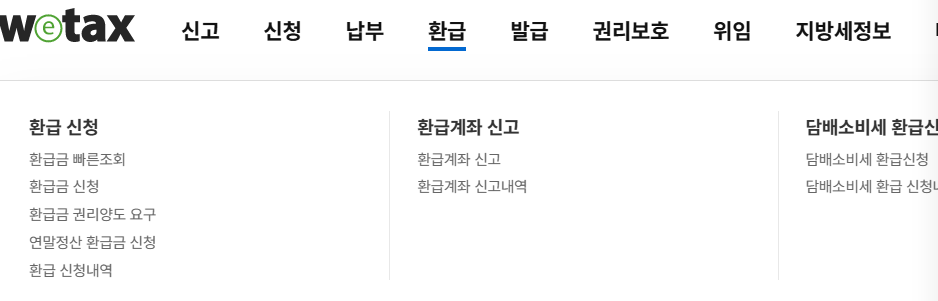- '환급' 메뉴 찾기: 로그인 후 메인 화면 상단 메뉴에서 [환급] > [환급금 조회·신청] 순서로 클릭합니다.