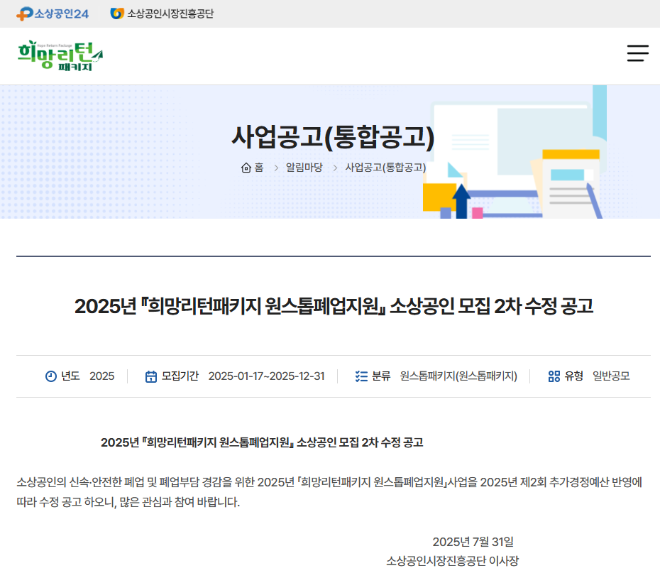2025년 최신 희망리턴패키지 정보를 찾고 계신가요? 폐업을 앞둔 소상공인이라면 필독! 소상공인시장진흥공단에서 지원하는 희망리턴패키지 신청 방법부터 소상공인폐업지원금 최대 600만원 받는 꿀팁까지, 지금 바로 확인하고 든든한 재기의 발판을 마련하세요.