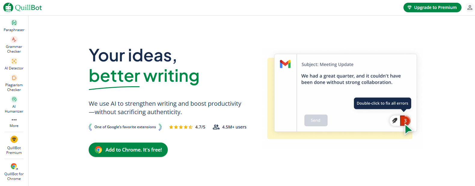 - 편리한 확장 프로그램: 크롬 브라우저와 MS 워드 확장 프로그램을 지원하여, 어떤 환경에서든 바로 QuillBot을 불러와 사용할 수 있습니다.
